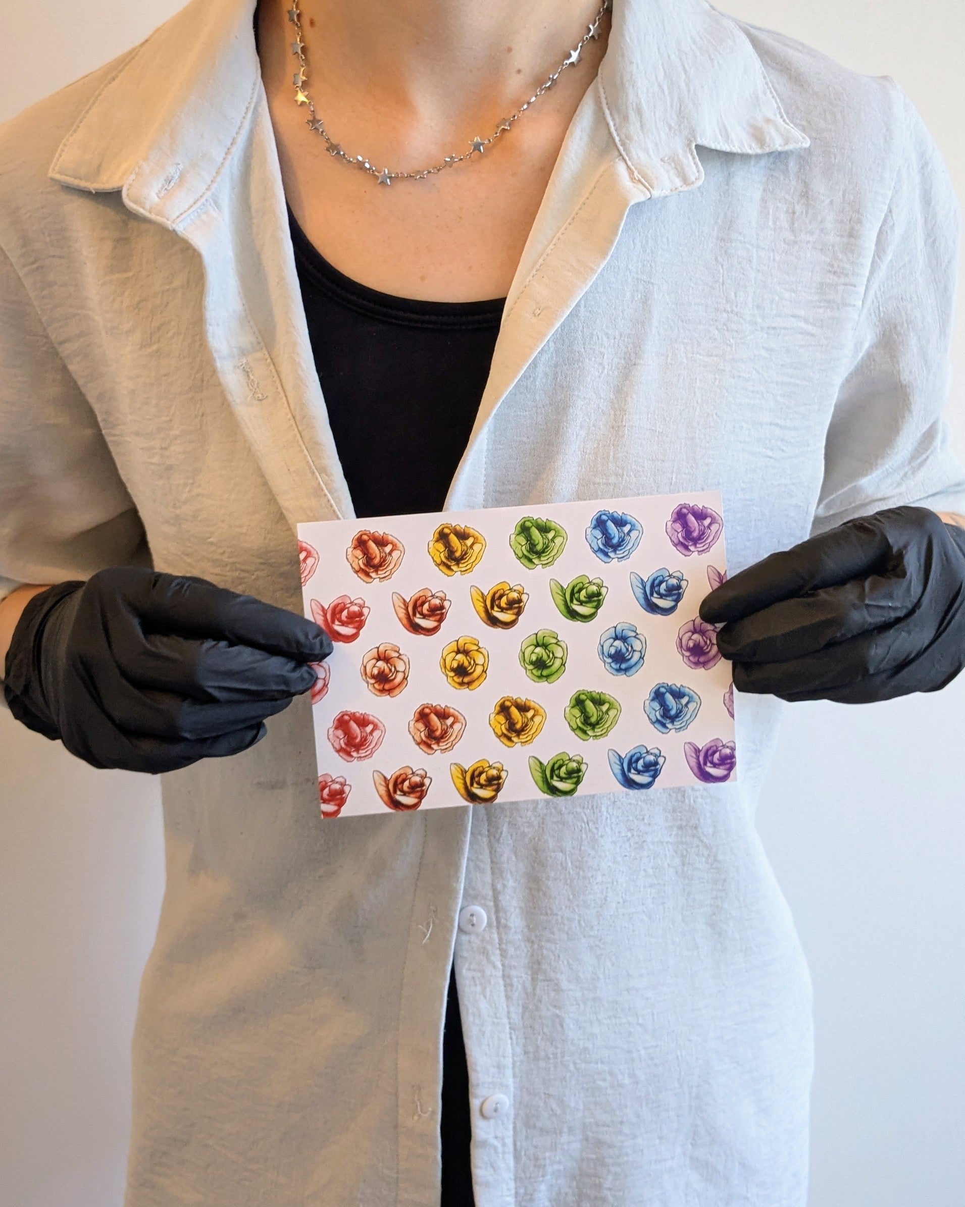 A6 art print of the work 'Dick flower rainbow' by Ben Ireland. 250gsm silk print.