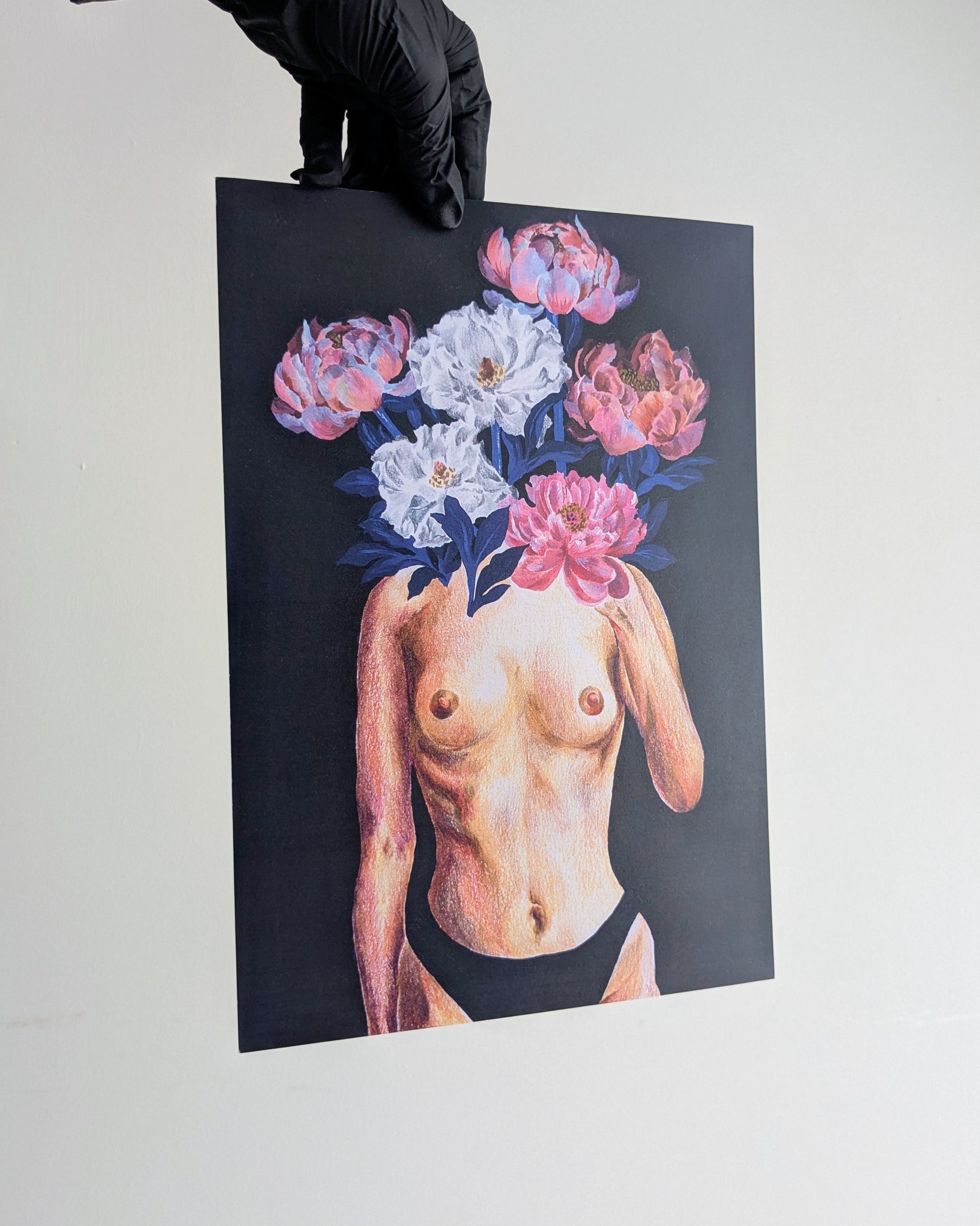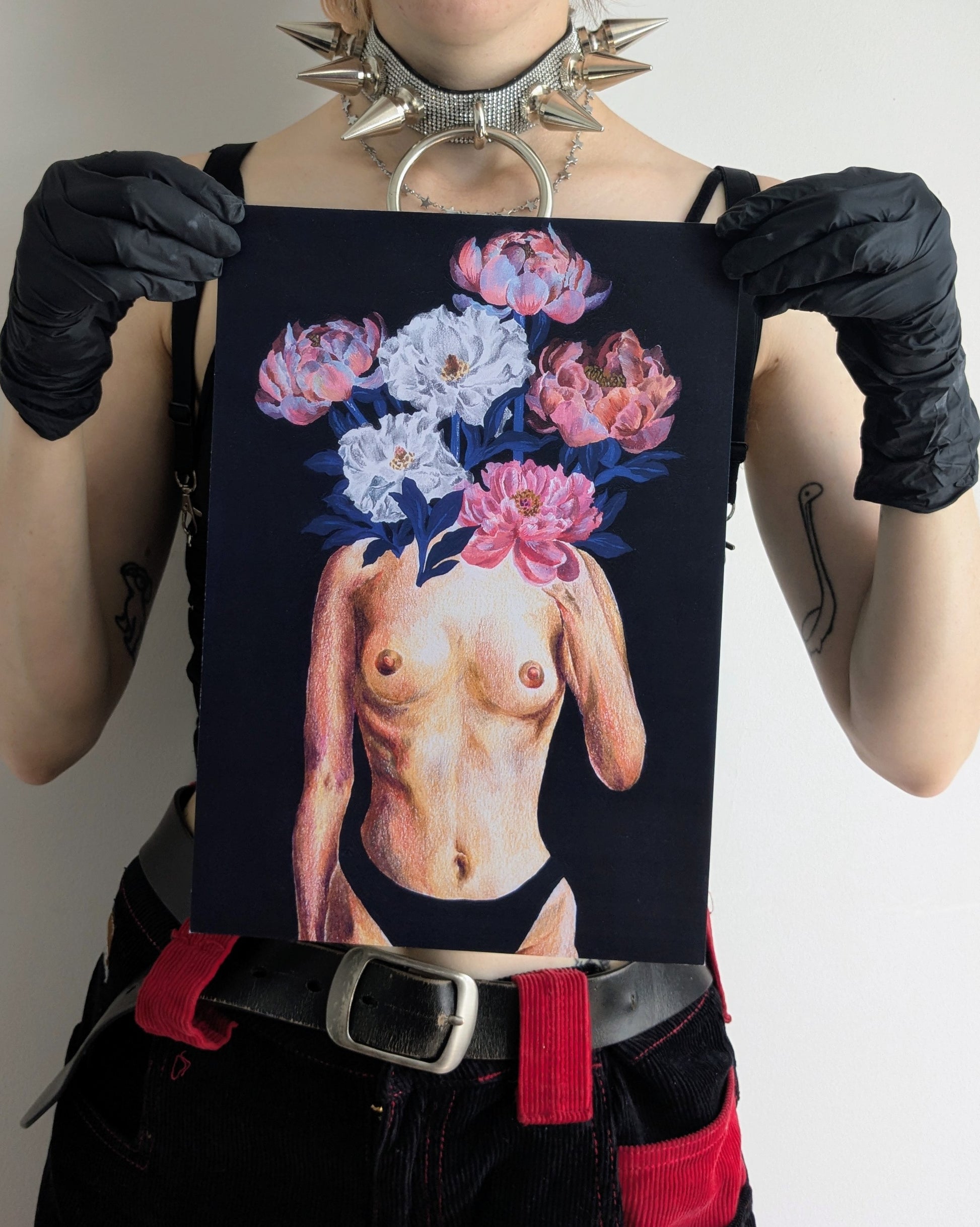 A4 art print of the work 'Outta my head' by Anya Lyubareva. 250gsm matt print.